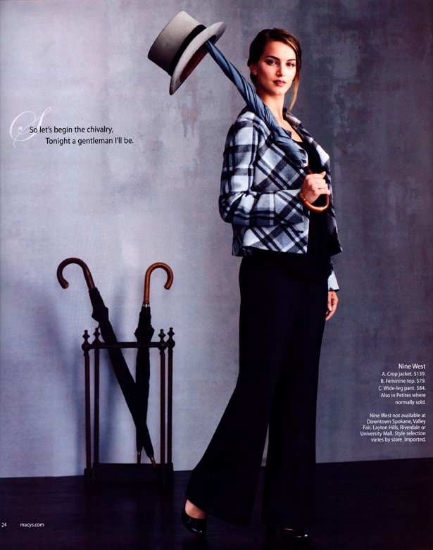 The stately, tailored menswear-inspired look featured here is balanced with playful, rhyming body copy.