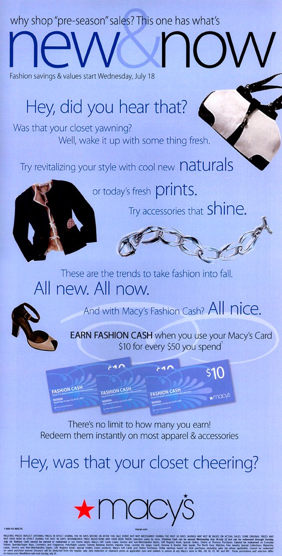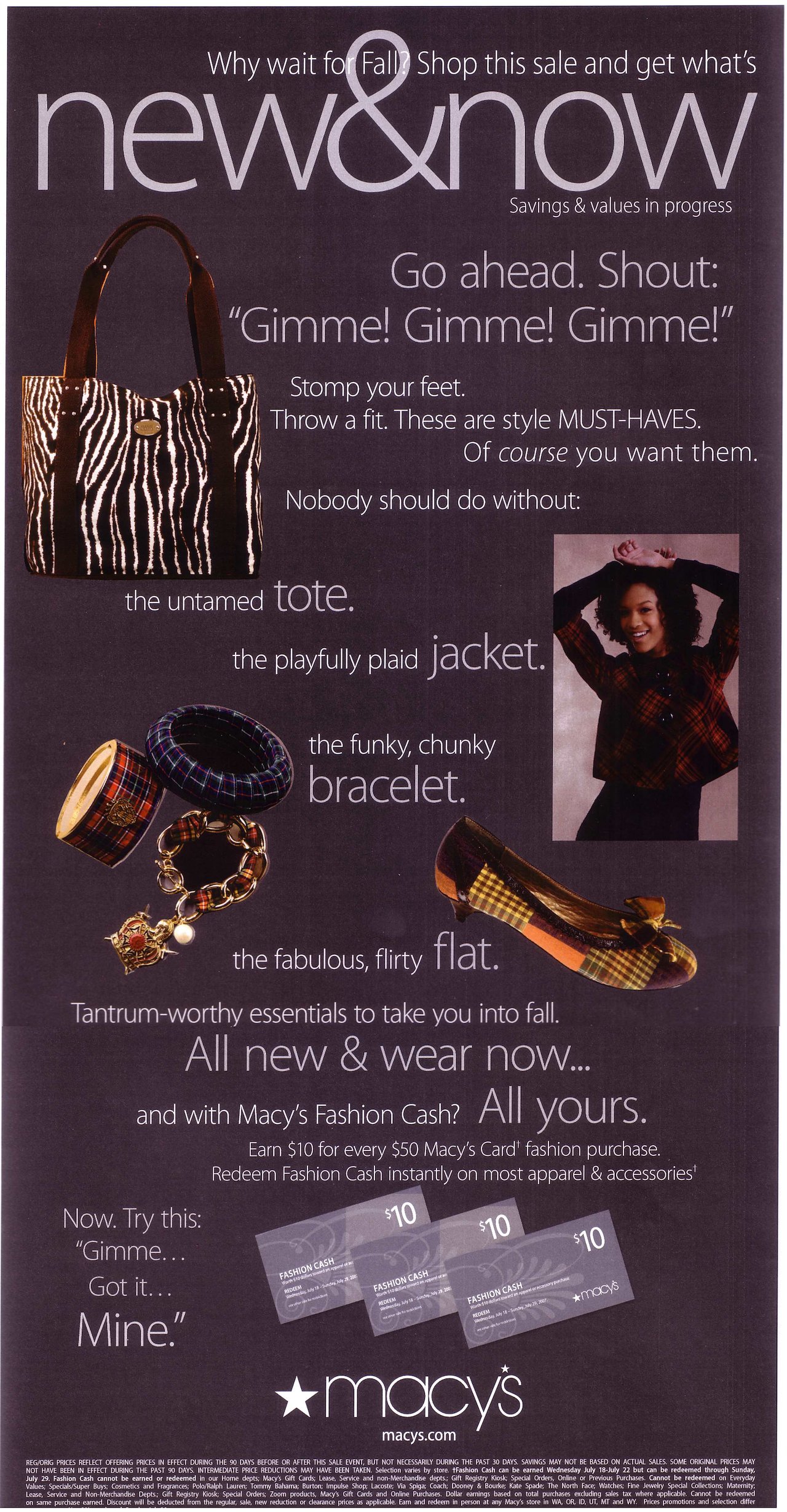 In Macy's company-wide push to increase sales in Junior departments, an edgier ROP campaign was launched in urban newspapers.