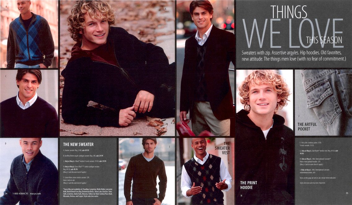 "THINGS WE LOVE THIS SEASON: Sweaters with zip. Assertive argyles. Hip hoodies. Old favorites, new attitude.