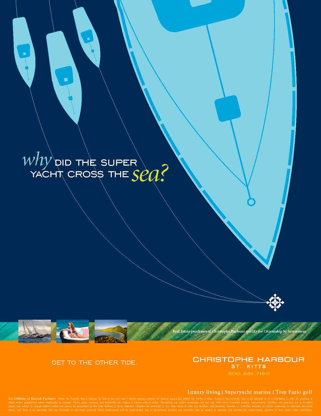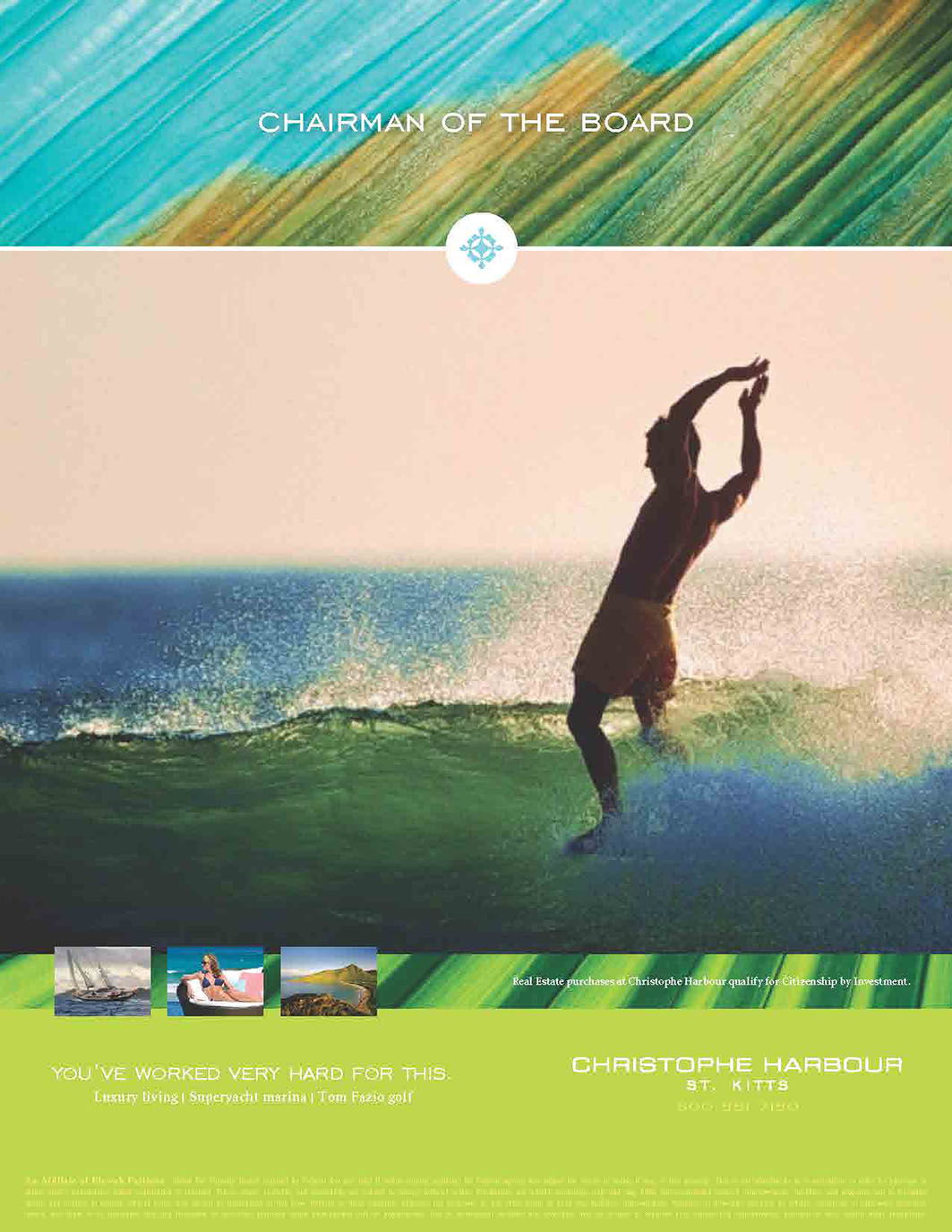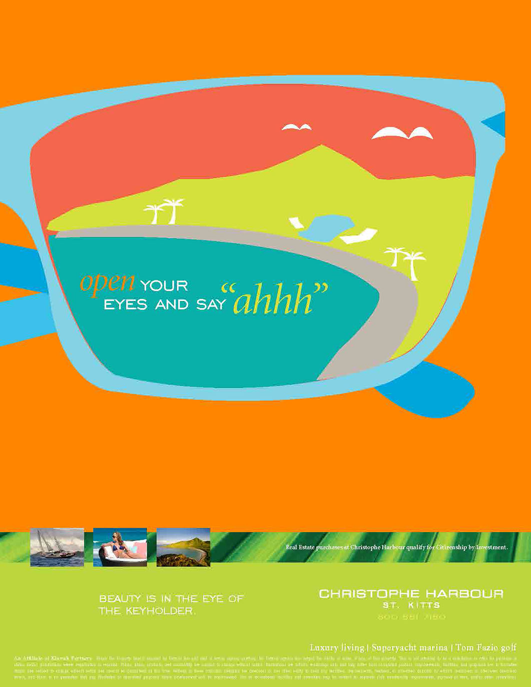 Targeting C-Level executives, a series of 3 magazine ads were developed in colorful hues and lively copy to introduce Christophe Harbour and its super yacht marina to a hipper, younger demographic.