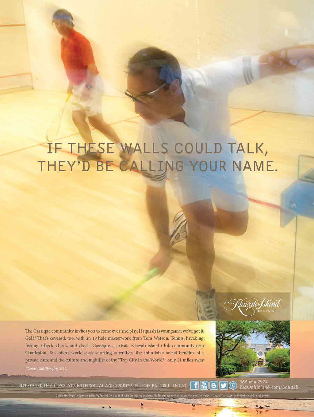 The Sports Pavilion, a hi-tech fitness facility available to Kiawah Island Club members had never been properly marketed. Here, we called attention to its fabulous squash courts.