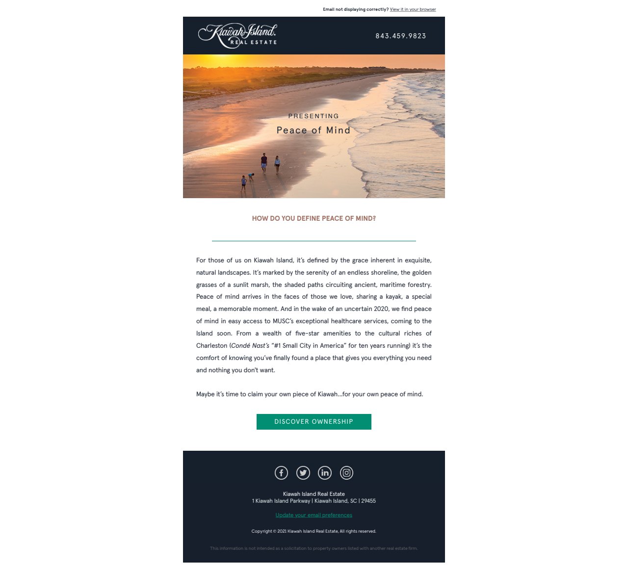 Playing to the hard-earned success of Kiawah's target market, ads for the island's premier gated community emphasized the rewards of a life well-lived.