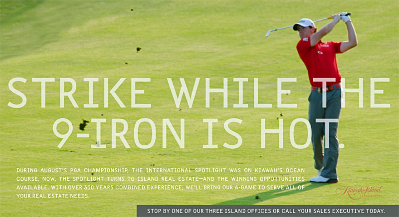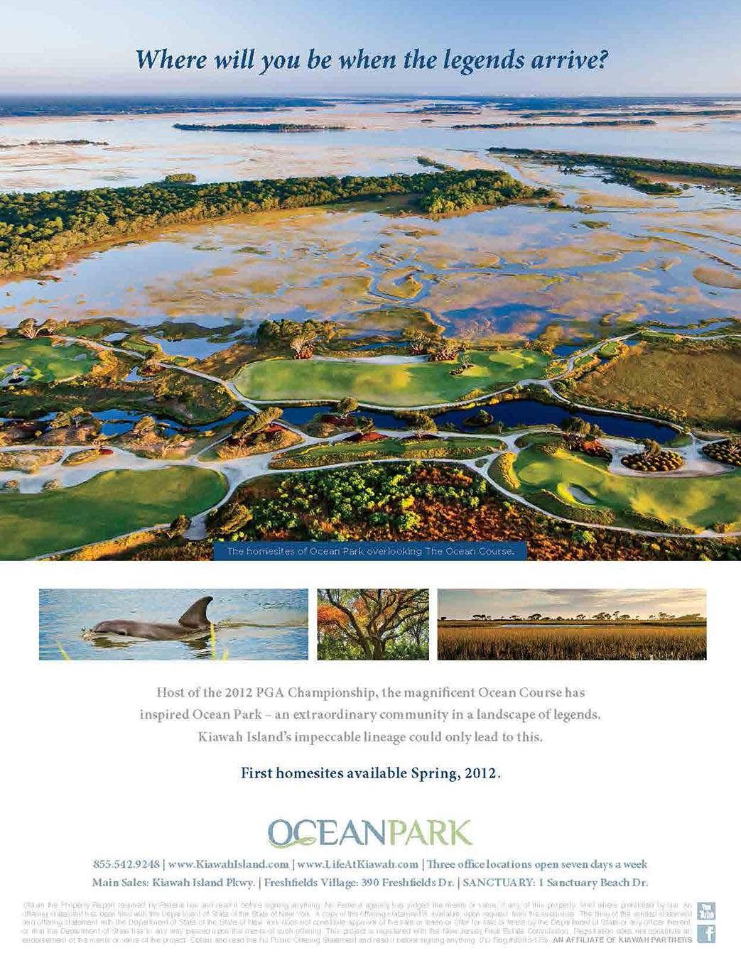 Leveraging the 2012 PGA Championships, being played out on Kiawah's Ocean Course, a Charleston Magazine and Legends ad touted the Ocean Park neighborhood as the place to be closest to the action.